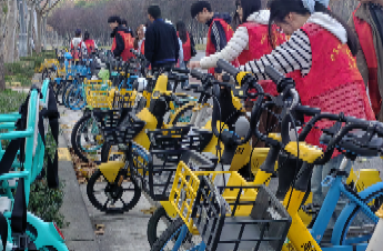 会后,17名党员发展对象前往文苑北路地铁口开展志愿服务活动,将乱停乱放的共享单车进行有序摆放。通过本次活动,将党的理论内化于心、外化于行,以实际行动践行党的初心与使命,强化宗旨意识。