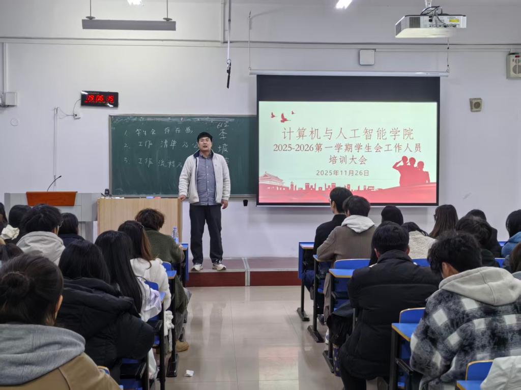 为全面提升学生骨干综合素质,增强学生会组织活力,11月26日18:30—20:30,计算机与人工智能学院学生会在启智楼207召开2025—2026学年第一学期院级学生会骨干培训会。